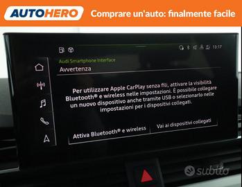 Chilometraggio: 47513 Condizioni: usato Immatricolazione: 10/2021 Tipologia: 4/5-Porte Carburante: Elettrica/Diesel Tipo di cambio: Automatico ABS, Adaptive Cruise Control, Airbag, Airbag laterali, Airbag Passeggero, Airbag testa, Alzacristalli elettrici, Android Auto, Apple CarPlay, Autoradio, Bluetooth, Boardcomputer, Bracciolo, Cerchi in lega, Chiusura centralizzata, Chiusura centralizzata senza chiave, Climatizzatore automatico, 2 zone, Controllo elettronico della corsia, Controllo trazione, Controllo vocale, ESP, Fari LED, Filtro antiparticolato, Frenata d'emergenza assistita, Freno di stazionamento elettrico, Hill holder, Immobilizzatore elettronico, Isofix, Leve al volante, Luci diurne LED, MP3, Schermo multifunzione interamente digitale, Sedile posteriore sdoppiato, Sensore di luce, Sensore di pioggia, Sensori di parcheggio anteriori, Sensori di parcheggio posteriori, Servosterzo, Sistema di navigazione, Sound system, Specchietti laterali elettrici, Specchietto retrovisore con funzione antiabbagliamento, Start/Stop Automatico, Telecamera per parcheggio assistito, Touch screen, USB, Vetri oscurati, Vivavoce, Volante in pelle, Volante multifunzione PAGAMENTO ALLA CONSEGNA, RESO GRATUITO E 1 ANNO DI GARANZIA: SOLO SU AUTOHERO! _________________________________________ SEMPRE INCLUSO: - Pagamento alla consegna, prima vedi poi paghi - Reso gratuito, avrai 21 giorni e 500 km per cambiare idea - Finanziamento flessibile**, personalizzabile senza vincoli - Standard di qualità, veicoli ricondizionati e sanificati - Semplicità nell'acquisto, gestiamo noi tutte le pratiche - Acquisto sicuro, più di 1000 feedback positivi su Trustpilot - Garanzia 12 mesi inclusa, estendibile fino a 36 mesi _________________________________________ SALIAMO A BORDO! Tra le nostre Audi A4, questa si presenta nell allestimento S line 163 CV S tronic MHEVImmatricolata a ottobre 2021, si presenta in perfette condizioni. L alimentazione Diesel è ancora la soluzione