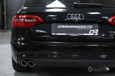 Audi A4 avant con cerchi in lega da 18", sensori di parcheggio posteriori, fari bi-xenon e luci diurne LED, vetri posteriori oscurati, mancorrenti al tetto, specchietti retrovisori esterni ripiegabili elettricamente e riscaldabili, fendinebbia, bracciolo anteriore centrale, volante in pelle multifunzione, cruise control e limitatore di velocità, display centrale, navigatore, bluetooth, lettore cd, drive select, start & stop, ecc.