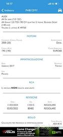 CAR VILLAGE leader del mercato con oltre 7000mq di esposizione in Pomponesco sp57 n10 che fa parte della Community NON PRENDERMI PER IL CHILOMETRO E' LIETA DI PRESENTARVI: STUPENDA audi a4 2.0 190cv Vettura tagliandata, garantita e sanificata * SCOPRITE I NOSTRI VANTAGGI USATO GARANTITO E RICONDIZIONATO * POSSIBILITA' PERMUTA USATO CON USATO * FINANZIAMENTI PERSONALIZZATI FINO AD 84 MESI * POSSIBILITA' DI ESTENDERE LA GARANZIA A 24 / 36 / 48 MESI Ci scusiamo per l'inconveniente ma a causa della non uniformità dei dati pubblicati dai diversi portali,vi invitiamo a verificare le caratteristiche dello specifico veicolo * I nostri Consulenti sono a Sua disposizione tutti i giorni, dal lunedì al sabato, dalle 9.00 alle19 Massimo WhatsApp 3.4.6.3.5.3.0.6.4.7 Antonio Finanziamenti 3.4.0.9.1.4.8.1.3.8