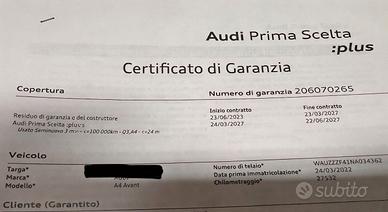 Vendo la mia Audi A4 Avant 35 (station wagon) immatricolata 06/2022 con 125.000 km in condizioni perfette, sempre manutenzionata con tagliandi regolari.
