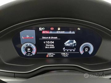 ALTRI OPTIONALS: (3l5) sedili anteriori a regolazione elettrica, (4a3) riscaldamento dei sedili anteriori, (4e7) cofano del bagagliaio ad apertura e chiusura elettriche, (4gr) parabrezza in vetro comfort climatizzato/isolante acusticamente,, (4zd) pacchetto estetico nero, (6e3) bracciolo centrale anteriore comfort, (6nq) cielo in tessuto nero, (6xk) specchietti esterni regolabili, riscald. e ripieg. elettricamente, con funz., (7hb) elementi interni in similpelle, (7x2) sistema di controllo per il parcheggio plus, (8g1) regolazione automatica degli abbaglianti, (8i6) supporto lombare a regolazione pneum. con funzione massaggio per, (9aq) climatizzazione comfort a 3 zone, (9vd) audi sound system, (c7r) cerchi in lega 5 razze parallele 7 5j x, (iu1) audi smartphone interface, (ka2) retrocamera, (pcb) audi active lane assist incl. riconosc. segnaletica stradale con, (pch) assistente di cambio corsia incl. audi pre sense rear, (pih) pacchetto sicurezza bambini, (qq1) pacchetto luci ambiente, (uh2) assistente alla fermata, (vw5) vetri delle porte anteriori insonorizzanti, (w1e) pacchetto business, 1xw volante in pelle a 3 razze con multifunzione plus