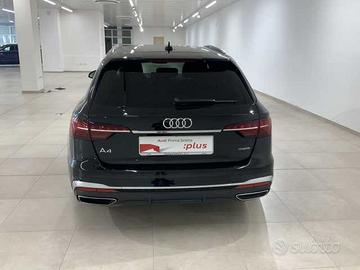 Pacchetto S line, Proiettori a LED Audi Matrix, Vetri laterali posteriori e lunotto oscurati, Sedili rivestiti in microfibra Dinamica/pelle con logo S line ai sedili anteriori, Telecamera per retromarcia posteriore, Colore metallizzato Blu Navarra, Airbag fullsize per conducente e passeggero, Assetto sportivo, Attrezzi di bordo, Audi drive select, Audi pre sense city, Audi virtual cockpit plus, Cielo in tessuto nel colore specifico, Disattivazione airbag passeggero anteriore, Dispositivo di assistenza per proiettori abbaglianti, Gruppi ottici posteriori a LED, Kit riparazione pneumatici, Mancorrenti al tetto in alluminio anodizzato, Pacchetto esterno lucido, Pacchetto Evolution, Pacchetto luci interne a LED, Pneumatici a bassa resistenza al rotolamento (velocità massima 210 km/h), Portellone vano bagagli ad apertura e chiusura elettrica - solo per A4 Avant, Proiettori a LED con gruppi ottici post. a LED, Rivestimento dei sedili in tessuto, Sedili anteriori sportivi, Sensore pioggia/luci, Serbatoio AdBlue da 24 litri, Sistema di controllo pressione pneumatici, Sistema di navigazione MMI plus con MMI touch, Specchietti di cortesia illuminati, Supporto lombare elettrico per sedili anteriori, Tetto in colore carrozzeria, Trazione integrale permanente quattro con tecnologia ultra, Trazione integrale quattro, Volante multifunzione plus in pelle a 3 razze, ABS, EBV (Ripartitore elettronico della forza frenante), Airbag laterali anteriori per testa/torace, Airbag laterali per la testa, Airbag per le ginocchia, Lane departure warning, Interfaccia Bluetooth, Appoggiabraccia centrale anteriore comfort, Cambio S tronic, Cerchi in lega di alluminio 8J x 18 a 5 razze a Y, Chiusura centralizzata con telecomando, Climatizzatore automatico comfort 3 zone, Audi connect emergency call, Audi smartphone interface, Servizi Audi Connect, Cruise control, Proiettori a LED, Dispositivo antiavviamento elettronico, Immobilizzatore elettronico, Ricezione Radio digitale (DAB), Retrovisori ter...