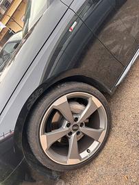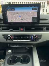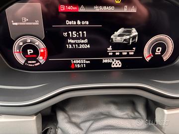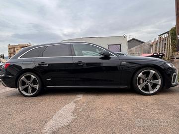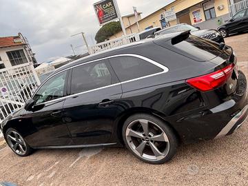 Audi A4 S line colore nero con rifiniture cromate, cerchi in lega bicolore satinati, vetri oscurati, interni in pelle di colore nero, cambio automatico, volante multifunzione, contakm virtual