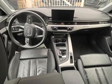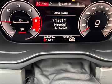 Audi A4 S line colore nero con rifiniture cromate, cerchi in lega bicolore satinati, vetri oscurati, interni in pelle di colore nero, cambio automatico, volante multifunzione, contakm virtual