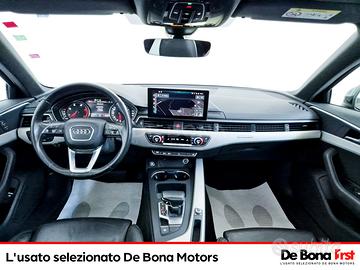 Airbag laterali anteriori e sistema di airbag laterali per la testa, Appoggiabraccia centrale anteriore comfort con regolazione dell'inclinazione e regolazione in senso longitudinale.Incluso nelle versioni Business e Business Sport, Assetto sportivo abbassamento delle sospensioni di 20 mm, con taratura piamp;ugrave; rigida delle m, Attrezzi di bordo, Audi connect Emergency call amp; Service, Audi connect Navigation amp; Infotainment plus, Audi drive select, Audi pre sense city, Audi smartphone interface, Audi virtual cockpit plus, Battitacco anteriore con inserto in alluminio illuminato con logo S, Caratterizzazione estetica S line, Cerchi in lega di alluminio 8J x 18 a 5 razze a Y e pneumatici 245/40 R18, Chiusura centralizzata con telecomando, Cielo vettura in tessuto, Climatizzatore automatico comfort 3 zone e sensore pioggia/luci, Cofano anteriore con sistema di protezione dei pedoni, Copertura del vano bagagli ad apertura/chiusura elettrica, Cruise control, Disattivazione airbag passeggero anteriore, Dispositivo antiavviamento elettronico (immobilizer Audi), Dispositivo di assistenza per proiettori abbaglianti, Fondo del vano di carico double-face, Freno di stazionamento elettromeccanico, Gruppi ottici posteriori a LED, Illuminazione interna a LED, Inserti in vernice diamantata grigio argento, Interfaccia Bluetooth, Kit di pronto soccorso e triangolo di emergenza nel vano bagagli. 2 Giubbini ad alta visibilita nei vani portaoggetti delle portiere anteriori (1 per lato), Kit riparazione pneumatico, Logo modello al portellone senza denominazione tecnologia, Mancorrenti al tetto in alluminio anodizzato, Pacchetto esterno lucido (A4 Avant)