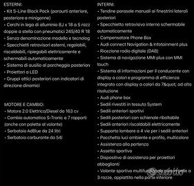 Vendesi splendida Audi A4 berlina (ultimo restyling B9.5) del fine 2019, allestimento S-Line Black Pack Edition esterno.