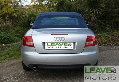 AUDI A4CABRIOLET 1.8 T 20V QUATTRO Leave Motorspropone in conto vendita affascinante vettura cabriolet in fantastiche condizionioriginali, perfettamente conservata, chilometraggio molto basso e certificato.Vettura ventennale con possibilità di chiedere il Certificato di RilevanzaStorica (CRS) dell’ASI per ottenere vantaggi fiscali ed assicurativi. Carrozzeria incondizioni ottime, colore grigio argento metallizzato, presente solo piccolosegno su paraurti posteriore come in foto. Cappotte ad azionamento elettrico perfettamentefunzionante in tela triplo strato di colore blu. Ruote in lega leggera dialluminio da “16 color argento, pneumaticicon battistrada al 80%. Interni originalie perfettamente conservati, selleria in tessuto grigio antracite, nessundifetto. Plancia e portiere con inserto in radica di noce in ottime condizioni,accessoriata con impianto audio Audi, climatizzatore automatico Bizona, varisistemi di sicurezza. Meccanica inordine e brillante alla guida, pronta a viaggiare. Eseguito tagliando di manutenzione periodica aNovembre 2025. Kit distribuzione sostituito a Maggio 2024 a 106.373 km. Trazione integrale permanente “Quattro”. Documenti inregola per il trasferimento di proprietà. Disponibileper visita e prova SOLO su appuntamento chiamando al anche WhastApp. Disponibilialtre info, foto e video a richiesta. Segui anche la nostra pagina Facebook “Leave Motors Ragusa”