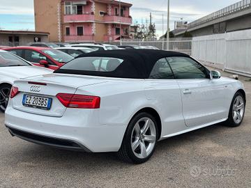 SER CAR AUTO PROPONE IN VENDITA AUDI A5 CABRIO RESTYLING,IMMATRICOLATA NELLANNO 04/2015,ALIMENTATA DA UN MOTORE DIESEL 2.0 DI CILINDRATA SUPPORTATO DA 170CV CON CAMBIO AUTOMATICO. VETTURA STUPENDA E SOPRATTUTTO IN OTTIME CONDIZIONI IN TUTTI GLI ASPETTI SEMPRE REGOLARMENTE TAGLIANDATA UNICO PROPRIETARIO PROVENIENZA NORD ITALIA CHILOMETRI ORIGINALI,VERIFICABILI E FATTURATI VERO AFFARE VERSIONE S-LINE ESTERNO EQUIPAGGIATA CON I SEGUENTI OPTIONAL: Fari full LED Stop LED Cerchi in lega da 18 pollici Sensori di parcheggio anteriore e posteriore Pacchetto chromo 4 vetri elettrici Specchietti retrovisori ribaltabili elettronicamente Sedili regolabili elettronicamente Sistema di navigazione mmi di serie Climatizzatore elettronico Bi-zona Idroguida automatica Entrata usb di serie Entrata aux di serie Bluetooth per chiamate vocali e connessione dati Cambio automatico MULTITRONIC a 8 rapporti Cruise control (pilotino automatico) Volante multifunzione Volante con doppia regolazione Ruotino di scorta Start e stop Freno di stazionamento elettronico Sensori luce Sempre pioggia Spruzzino lavafari Sensori pressione pneumatici Doppie chiavi Cappotta elettronica ABS Airbag Pc di bordo ECC VETTURA CON REVISIONE IN REGOLA PREZZO AFFARE VISTO LE CONDIZIONI DELLA VETTURA CI TROVIAMO NEI PRESSI DEL PARCO COMMERCIALE AUCHAN DI GIUGLIANO QUALSIASI VERIFICA POSSIBILIT DI ESTENSIONE GARANZIA FINO A 24 MESI CON SOCCORSO STRADALE GRATUITO E VETTURA SOSTITUTIVA IN TUTTA ITALIA FINANZIAMENTI IN SEDE CON TASSO AGEVOLATO SER CAR AUTO