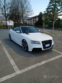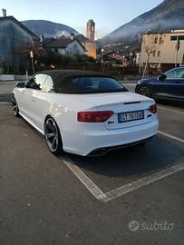 leggere bene . fantastica audi A5 cabrio completamente trasformata in replica rs5 compreso anche il volante che vedete in foto . stage 2 potentissima con sound da vera Supercar cerchi da 20 a libretto assetto dedicato gommata , sostituito da poco compressore aria condizionata ( difetto tipico di questo modello ) batteria semi nuova , doppie chiavi , versione full optional con impianto Bang & Olufsen palette al volante sedili sportivi elettrici e riscaldati in pelle , doppio clima , 3 modalità di guida , meccanismo capote perfetto , . valuto permute scambi con auto di solo mio gradimento . no perditempo
