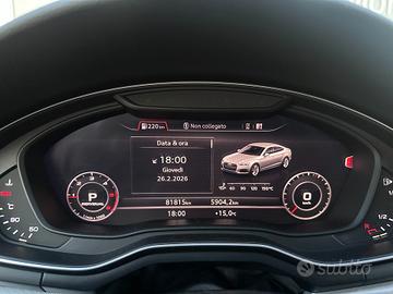 Tutte le nostre auto vengono regolarmente SANIFICATE, LAVATE, IGIENIZZATE e CONTROLLATE. STUPENDA AUDI A5 SPORTBACK S-LINE QUATTRO EDITION, tenuta con cura maniacale dall’UNICO PROPRIETARIO!! La carrozzeria è perfetta, gli interni non presentano segni d'usura e la meccanica, come da tradizione della casa, risulta essere eccellente. Il motore 2.0 diesel con 190 cavalli abbinato al cambio automatico S-TRONIC a 7 rapporti (dalle cambiate veloci ed impercettibili) e alla trazione intelligente QUATTRO (che ripartisce la trazione in base alle necessità) rendono questa autovettura sicura in ogni tipo di condizione stradale. Oltre a tutti i sistemi di sicurezza di serie è accessoriata con FARI DIURNI ANTERIORI E POSTERIORI A LED, sensore di luce e di pioggia, FARI BI-XENON, specchietti laterali elettrici ripiegabili elettricamente, CERCHI IN LEGA DA 19 POLLICI S-LINE, vetri anteriori e posteriori elettrici, sensori di parcheggio anteriori e posteriori, SEDILI SPORTIVI con supporto lombare, volante multifunzione in pelle sportivo appiattito con bilancieri, CRUISE CONTROL e limitatore di velocità, computer di bordo a colori, AUDI DRIVE SELECT, freno di stazionamento elettronico con ausilio alla partenza in salita, VIRTUAL COCKPIT, climatizzatore automatico, specchietto retrovisore interno fotocromatico, NAVIGATORE SATELLITARE MMI PLUS touch, bracciolo portaoggetti anteriore e posteriore, sedili posteriori sdoppiati, ASSETTO SPORTIVO RIBASSATO S-LINE, chiusura centralizzata con comando a distanza, PORTELLONE POSTERIORE ELETTRICO, start&stop e molto altro ancora. La garanzia ha la durata di 12 mesi, c'è la possibilità di estenderla a 24 mesi. Venite a provarla, senza impegno anche con meccanico di fiducia, sicuramente non ve ne pentirete. Possibilità di permuta del vostro usato e di finanziamento a tassi vantaggiosi, anche dell'intero importo. Per ulteriori informazioni non esitate a contattarci al numero (Mauri) o al numero (Fabi
