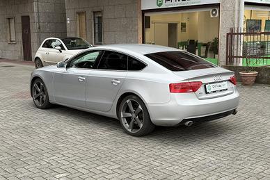 PERIZIA DELL'ESPERTO PRIVACAR: Splendida Audi A5 Sportback presentata in ottimo stato. Vettura secondo proprietario, il quale vende per cambio segmento. Riposta sempre in box, tenuta con cura e portata in CASA MADRE per la manutenzione, ultimo tagliando svolto in data 04/2025(cadenza ufficiale ogni 2 anni/30.000km). In allestimento Advanced troviamo dotazioni come: chiusura centralizzata, fendinebbia, fari bi-xenon, comandi al volante, computer di bordo, infotainment Audi MMI con lettore cd, sedili anteriori regolabili in altezza, climatizzatore automatico, vetri privacy, cerchi in lega da 19" Audi Rotor, ruota di scorta e tante altre. Gomme invernali in buono stato. Vettura proposta con la garanzia di conformità legale per 12 mesi inclusa.
