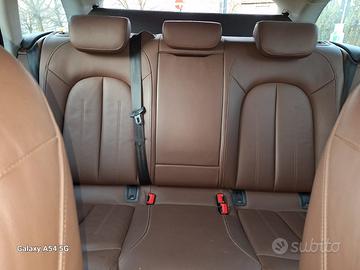 I rivestimenti dei sedili sono in pelle color cuoio, mentre gli inserti del cruscotto e della console centrale sono in legno chiaro.