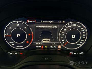 Auto disponibile presso il nostro showroom. Il prezzo è comprensivo di IVA. Restano escluse le spese relative al passaggio di proprietà. Visita il nostro sito www.superauto90.com per scoprire foto, video e tutti i dettagli della vettura, insieme ad i servizi che offriamo. Trasferimento di proprietà immediato Grazie al nostro studio di consulenza automobilistica interno, gestiamo tutte le pratiche in tempi rapidissimi, anche per vendite a distanza. Chilometraggio certificato e riportato in fattura Massima trasparenza e garanzia sul reale stato del veicolo. Disponibilità per test su strada È possibile provare il veicolo direttamente presso la nostra sede prima dell’acquisto. Accoglienza clienti da stazioni ferroviarie o aeroporti Su richiesta, organizziamo il tuo arrivo presso la nostra sede con la massima comodità. Le nostre condizioni di acquisto sono chiare e trasparenti: Prezzi reali e non vincolati a prodotti finanziari e/o assicurativi. Su richiesta, offriamo soluzioni di finanziamento o leasing personalizzate. WhatsApp info@superauto90.com Illuminazione interna d'ambiente, Sedili anteriori normali, Appoggiabraccia centrale anteriore, Cielo dell'abitacolo in tessuto, Tappetini anteriori e posteriori in velours, Sedili del sedile posteriore ribaltabile, Volante sportivo multifunzionale in pelle a 3 razze, Climatizzatore automatico comfort a 2 zone, Audi connect Remote & Control (per MMI Radio plus), Parabrezza con fascia antiriflesso in grigio, Vetri atermici, Chiave comfort, Attrezzi di bordo, Materiale di pronto soccorso con triangolo di emergenza, Kit riparazione pneumatico, Blade in argento selenite, Elementi estetici S line, Inserti in vernice effetto diamante grigio argento, Listelli sottoporta anteriori con inserto in alluminio, illuminati con logo S, Modanature nere ai finestrini, Audi virtual cockpit, Dispositivo antiavviamento elettronico, Assetto sportivo, Assistente abbaglianti,