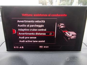 Cambio automatico,Virtual Dashboard, navigatore satellitare ,fari xeno, radar controllo corsia e distanza,climatizzatore automatico bizona,abs,esp,air bag laterali,Audi drive select,ruote in lega,comandi cambio al volante,adaptive light,bluetooth,sensori di parcheggio ,comandi radio e telefono al volante,cruise control,ingresso,doppio sd card,aux e usb,sensore pioggia,specchi abbattibili,Audi sound system,pacchetto luci.