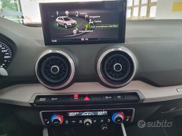 Audi Q2 30 tfsi benzina, accessoriata di proiettori anteriori e posteriori full led con funzione luci di svolta dinamica, luci abbaglianti automatiche, sistema di apertura e accensione senza chiave (Keyless), portellone posteriore elettrico, sedili riscaldabili con regolazione lombare elettrica, comandi al volante, Audi Smartphone Interface (interfaccia integrata Android Auto/Apple Car Play), luci abitacolo attivabili/disattivabili a sfioramento, Audi MMI con navigazione cartografica 3D, battitacco illuminati, Audi Connect con hot spot Wi-Fi, telefono e audio bluetooth con ricarica senza fili wireless integrata nel vano bracciolo, cruise control, Audi Pre-Sense (sistema di avvertimento anticollisione), rilevatore di stanchezza conducente, sensore luci e pioggia, sensore di pressione pneumatici, sensori di parcheggio anteriori e posteriori con telecamera integrata, assistenza in salita, clima bi-zona, start-stop automatico, Isofix, sistema di chiamata d'emergenza ecc.