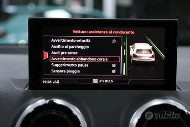 Allestimento S line con cambio automatico S tronic, fari LED matrix, cerchi in lega da 18", sensori di parcheggio posteriori, cristalli posteriori e lunotto oscurati, keyless, sedili sportivi rivestiti in tessuto, bracciolo anteriore centrale, volante sportivo multifunzione rivestito in pelle, sensore luci anabbaglianti/abbaglianti e pioggia, fendinebbia, cruise control e limitatore di velocità, display centrale, Apple CarPlay e Android Auto, bluetooth, navigatore, presa USB, base di ricarica wireless smartphone, climatizzatore automatico bi-zona, virtual cockpit plus (quadro strumenti digitale), avviamento vettura tramite pulsante, start & stop, assistenza al conducente (suggerimento pausa - Audi pre sense - avvertimento abbandono corsia), ISOFIX, monitoraggio pressione pneumatici, pulsante chiamata d'emergenza, ecc.