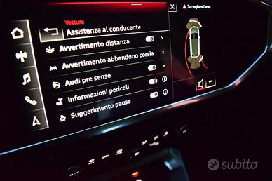 Allestimento “Business” dotato dei seguenti optional:vernice pastello Bianco Ibis,climatizzatore automatico Comfort a 2 zone,sedili rivestiti in tessuto Argument nero,inserto in Argento Micrometallic,elementi interni in Look alluminio,volante multifunzione Plus a tre razze in pelle,attacchi Isofix per il sedile del passeggero anteriore,sedili posteriori scorrevoli e ripiegabile secondo lo schema 40:20:40,sistema di navigazione MMI Plus con MMI Touch e display da 10.1”,Audi Smartphone Interface,interfaccia Bluetooth,Audi Virtual Cockpit da 10,25″,pacchetto luci interne parzialmente a Led,Adaptive Speed Assist (ACC),Audi Pre Sense Front,Lane Departure Warning,sensore luci/pioggia,specchietti retrovisori esterni riscaldabili e ripiegabili elettricamente,cambio automatico “S tronic” a 7 rapporti,proiettori anteriori a Led Audi Matrix,gruppi ottici posteriori a Led con indicatori di direzione dinamici,sistema di ausilio al parcheggio plus,mancorrenti al tetto in alluminio anodizzato,indicatore perdita pressione pneumatici,antifurto,cerchi in lega di alluminio 17″ a 5 razze doppie.
