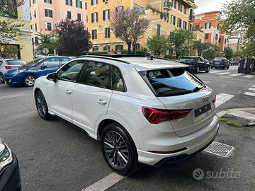 Mod. IDENTITY BLACK - Cambio automatico S tronic a 7 rapporti - N7V Rivestimento in tessuto Sprint/ pelle con logo S line ai sedili anteriori - 1PE Bulloni antifurto - 2H6 Audi drive select - 2PK Volante sportivo multifunzione plus in pelle a 3 razze, appiattito nella parte inferiore con bilancieri - 4A3 Sedili anteriori riscaldabili elettricamente - 4E7 Portellone vano bagagli ad apertura e chiusura automatica - 4I3 Chiave comfort con apertura del vano baule tramite sensori (senza Safelock) - 52Z Cerchi in lega di alluminio Audi Sport a 5 razze a V design stella 8,5J x 20 in grigio titanio opaco - 5KR Panca posteriore ripiegabile e scorrevole plus - 6XK Specchietti retrovisivi esterni regolabili, riscaldati e ripiegabili elettricamente con funzione Antiabbagliamento - 7HC Elementi interni in ecopelle - 7P1 Supporto lombare a 4 vie per i sedili anteriori, a regolazione elettrica in senso orizzontale e verticale - 7W1 Audi pre sense basic - 7Y1 Lane change warning - 8G1 Dispositivo di assistenza per proiettori abbaglianti - 9S9 Audi virtual cockpit plus - 9VD Audi Sound system - 9ZV Audi phone box light - KA2 Telecamera per retromarcia posteriore - KH5 Climatizzatore aut
