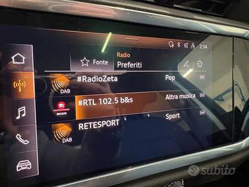 EURO 6D iscACCESSORI: cerchi in lega 17'' a 5 doppie razze in allum., mancorrenti longit. al tetto in allum., vetri post.ri oscurati, tetto panoram. aprib. elettr., luci diurne e proiettori direzionali a Led, retrovisori esterni regolab., riscald. e ripieg. elettr., climatizzatore, modulo mp3 con ingr. usb, MMI Radio Plus (display 10.1'' con radio DAB e connettività), Audi Virtual Cockpit 10.25'', sensore luci e pioggia, volante in pelle multif., Cruise Control (regolat. e limit. velocità), airbags, abs, ebv, asr, esp, Audi pre sense, Audi Lane Assist, Driver Alert, freno di stazion. elettr., bracciolo appoggiag. centr., sedili in tessuto Argument, pack luci.