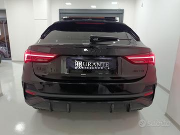 Audi Q3 Sportback S-Line Identity Black 35tdi 50.000km 06-2023 allestimento “Q3 SPB 35 TDI S tronic Identity Black”, alimentazione diesel, cambio automatico con paddle al volante, colore nero metallizzato, unico proprietario che l’ha acquistata a km0 il 30.08.2023 (immatricolazione Estera in Spagna 27.06.2023) presso la Conc. di San Felice a Cancello (CE) “AUTO CARFORA”, manutenzioni tutte eseguite presso Conc. Ufficiale AUDI di Martina Franca (TA) “BASILE SRL” con ultima eseguita in data 12.11.2025 a 48.112km. Pneumatici nuovi (4 stagioni) montati il 27.02.2026 a 51.500km. Vettura pari al nuovo, con SOLO 51.589 km all'attivo, davvero particolare nell'allestimento essendo una S-LINE IDENTITY BLACK con tetto panoramico apribile, guida alta e confortevole al suo interno, motorizzata con un 1.968 cc diesel da 150 cv (110 kw), consumi di circa 16-18 km/l in base allo stile di guida, classe ambientale Euro 6, ottime prestazioni, cambio automatico fluido e preciso. Versione IDENTITY BLACK (Top di Gamma) che prevede: Airbag anteriori laterali integrati nello schienale / per la testa che proteggono i passeggeri anteriori e dei posti posteriori esterni, Assetto sportivo, Assistente alla partenza in salita, Audi connect navigation & infotainment plus con MMI touch, Interfaccia ANDROID AUTO / APPLE CAR PLAY, Audi drive select (stile di guida), Audi pre sense front, Audi smartphone interface, Audi virtual cockpit da 10,25" plus, Battitacco anteriore con inserto in alluminio illuminato con logo S, Cerchi in lega Audi Sport a 5 razze doppie design Rotor da 20 pollici, Chiamata di emergenza e assistenza con Audi connect Remote & Control, Cielo vettura nero, Climatizzatore automatico bizona, Dispositivo di assistenza per proiettori abbaglianti, Elementi in look alluminio per interni, Freno di stazionamento elettromeccanico, Interfaccia bluetooth, Lane change warning e departure warning (uscita e mantenimento di careggiata), Pacchetto esterno lucido nero titanio plus Audi exclusive
