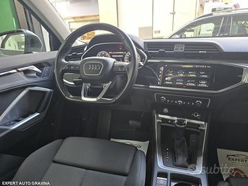 AUDI Q3 2.0 TDI 190 CV QUATTRO S-LINE TETTO APRIBILE - Fine 2020 - 105.000 km certificati - Unico proprietario - 2 chiavi - IVA DEDUCIBILE / DETRAIBILE 22% - Tetto apribile panoramico - Cambio automatico S-TRONIC 7 marce - Trazione integrale QUATTRO Prezzo: € 31.999 | Gravina in Puglia – Expert Auto Mostra numero ? Dotazioni principali: **Pachetti & Versione: -Pacchetto S-Line Edition -Pacchetto Evolution -Look esterno Black Pack -Virtual Cockpit Plus -Colore Daytona Grey Perla (vernice speciale) **Comfort & Interni: -Sedili sportivi anteriori -Supporto lombare elettrico -Illuminazione ambientale -Rivestimenti premium con inserti alluminio e vetro nero -Clima automatico Bi-Zona -Portellone bagagliaio elettrico -Barre portatutto nere -Vetri posteriori privacy **Tecnologia & Infotainment: -MMI Navigation Plus -Audi Virtual Cockpit Plus -Touchscreen MMI -Apple CarPlay & Android Auto -Bluetooth / USB / DAB -Impianto audio DSP Audi -Sensore luce/pioggia, sensori pressione gomme **Sicurezza & ADAS: -Adaptive Cruise Control -Lane Assist + Side Assist -Audi Pre-Sense Front -Emergency Assist + chiamata SOS -Assistente alla partenza -Frenata automatica di emergenza -ABS / ESP -Airbag anteriori, posteriori e laterali -Luci full LED con indicatori dinamici **Esterni: -Tetto panoramico elettrico anteriore + pannello fisso posteriore -Cerchi in lega sportivi Audi -Paraurti sportivi S-Line -Specchi elettrici e riscaldabili -Ugelli lavavetri riscaldabili -Luci d’ingresso a LED con proiezione logo **Meccanica: -Motore 2.0 TDI 190 CV -Cambio S-Tronic 7 marce -Trazione integrale QUATTRO -Telaio sportivo S-Line -Start/Stop -Euro 6D-TEMP * ?? Manutenzione / Cronologia -Libretto s