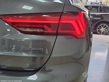 AUDI Q3 2.0 TDI 190 CV QUATTRO S-LINE TETTO APRIBILE - Fine 2020 - 105.000 km certificati - Unico proprietario - 2 chiavi - IVA DEDUCIBILE / DETRAIBILE 22% - Tetto apribile panoramico - Cambio automatico S-TRONIC 7 marce - Trazione integrale QUATTRO Prezzo: € 31.999 | Gravina in Puglia – Expert Auto Mostra numero ? Dotazioni principali: **Pachetti & Versione: -Pacchetto S-Line Edition -Pacchetto Evolution -Look esterno Black Pack -Virtual Cockpit Plus -Colore Daytona Grey Perla (vernice speciale) **Comfort & Interni: -Sedili sportivi anteriori -Supporto lombare elettrico -Illuminazione ambientale -Rivestimenti premium con inserti alluminio e vetro nero -Clima automatico Bi-Zona -Portellone bagagliaio elettrico -Barre portatutto nere -Vetri posteriori privacy **Tecnologia & Infotainment: -MMI Navigation Plus -Audi Virtual Cockpit Plus -Touchscreen MMI -Apple CarPlay & Android Auto -Bluetooth / USB / DAB -Impianto audio DSP Audi -Sensore luce/pioggia, sensori pressione gomme **Sicurezza & ADAS: -Adaptive Cruise Control -Lane Assist + Side Assist -Audi Pre-Sense Front -Emergency Assist + chiamata SOS -Assistente alla partenza -Frenata automatica di emergenza -ABS / ESP -Airbag anteriori, posteriori e laterali -Luci full LED con indicatori dinamici **Esterni: -Tetto panoramico elettrico anteriore + pannello fisso posteriore -Cerchi in lega sportivi Audi -Paraurti sportivi S-Line -Specchi elettrici e riscaldabili -Ugelli lavavetri riscaldabili -Luci d’ingresso a LED con proiezione logo **Meccanica: -Motore 2.0 TDI 190 CV -Cambio S-Tronic 7 marce -Trazione integrale QUATTRO -Telaio sportivo S-Line -Start/Stop -Euro 6D-TEMP * ?? Manutenzione / Cronologia -Libretto s