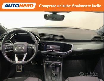 Chilometraggio: 110051 Condizioni: usato Immatricolazione: 02/2022 Tipologia: Fuoristrada Carburante: Diesel Tipo di cambio: Automatico ABS, Airbag, Airbag laterali, Airbag Passeggero, Airbag testa, Alzacristalli elettrici, Android Auto, Apple CarPlay, Autoradio, Bluetooth, Boardcomputer, Bracciolo, Cerchi in lega, Chiusura centralizzata senza chiave, Climatizzatore automatico, 2 zone, Controllo elettronico della corsia, Controllo trazione, Cruise Control, ESP, Fari LED, Freno di stazionamento elettrico, Immobilizzatore elettronico, Isofix, Luci diurne LED, Portellone posteriore elettrico, Riconoscimento dei segnali stradali, Schermo multifunzione interamente digitale, Sedile posteriore sdoppiato, Sedili riscaldati, Sensore di luce, Sensore di pioggia, Sensori di parcheggio anteriori, Sensori di parcheggio posteriori, Servosterzo, Sistema di navigazione, Specchietti laterali elettrici, Start/Stop Automatico, Vetri oscurati, Volante in pelle, Volante multifunzione PAGAMENTO ALLA CONSEGNA, RESO GRATUITO E 1 ANNO DI GARANZIA: SOLO SU AUTOHERO! _________________________________________ SEMPRE INCLUSO: - Pagamento alla consegna, prima vedi poi paghi - Reso gratuito, avrai 21 giorni e 500 km per cambiare idea - Finanziamento flessibile**, personalizzabile senza vincoli - Standard di qualità, veicoli ricondizionati e sanificati - Semplicità nell'acquisto, gestiamo noi tutte le pratiche - Acquisto sicuro, più di 1000 feedback positivi su Trustpilot - Garanzia 12 mesi inclusa, estendibile fino a 36 mesi _________________________________________ SALIAMO A BORDO! Tra le nostre Audi Q3 Sportback, questa si presenta nell allestimento S line S tronic quattroImmatricolata a febbraio 2022, si presenta in ottime condizioni. L alimentazione Diesel è ancora la soluzione migliore per gli spostamenti più lunghi e per garantire maggiore vita al tuo motore, grazie anche al cambio automatico. Infine, la vita a bordo sarà più facile grazie a Chiusura centralizzata