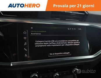 Tra le nostre Audi Q3 Sportback, questa si presenta nell allestimento S Line che valorizza l'anima sportiva della vettura con linee dinamiche e interni studiati per non farti mai stancare. Immatricolata a settembre 2023, si presenta in ottime condizioni. L alimentazione Benzina sarà l ideale per muoversi sia in città che su p