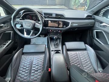 DEK:[10338911] AUDI RS Q3 SPORTBACK 2.5 TFSi QUATTRO S-tronic 400 CV IVA ESPOSTA 60/40 - UNICO PROPRIETARIO - CONDIZIONI IMPECCABILI - PARI AL NUOVO!!! EQUIPAGGIAMENTI DI SERIE : 2 Prese USB-C posteriori - Adaptive speed assist (ACC) - Airbag fullsize per conducente e passeggero - Airbag laterali anteriori integrati negli schienali dei sedili - Airbag laterali per la testa - Appoggiabraccia centrale anteriore scorrevole e regolabile in inclinazione - Assistenza alla partenza in salita - Attacchi Isofix con Top Tether per i sedili esterni della panca posteriore - Attrezzi di bordo - Audi Drive Select (modalità: comfort, auto, dynamic, efficiency, offroad, individual) - Audi Sound system - Audi connect Safety & Service con vehicle scheduling - Audi connect navigation & infotainment plus - Audi pre sense basic - Audi pre sense front con riconoscimento pedoni - Audi virtual cockpit plus - Audi virtual cockpit plus - Bulloni antifurto - Cambio S tronic - Cerchi in lega leggera Audi Sport con design a 10 razze a stella 8½ J x20 - Chiamata di emergenza e assistenza Audi connect con Audi connect Remote & Control - Chiave comfort con apertura del vano baule tramite sensori (senza Safelock) - Cielo dell'abitacolo in tessuto nero - Climatizzatore automatico bizona - Dispositivo per la disattivazione dell'airbag passeggero - Elementi degli interni in Dinamica nera - Elementi in look alluminio per interni - Elementi interni in Alcantara nera - Freno di stazionamento elettromeccanico con assistenza alla partenza - Interfaccia Bluetooth con colleg. di 2 telefoni, streaming audio e led notifica sms e mail - Kit pronto soccorso, triangolo di emergenza, con due giubbottini d'emergenza - Kit riparazione pneumatici - Kit riparazione pneumatici - Lane departure warning (disp. di assistenza per mantenimento di corsia) - Lavafari - Materiale pronto soccorso con triangolo di emergenza - Pacchetto Look alluminio - Pacchetto esterno lucido con cornice finestrini in ---- CO