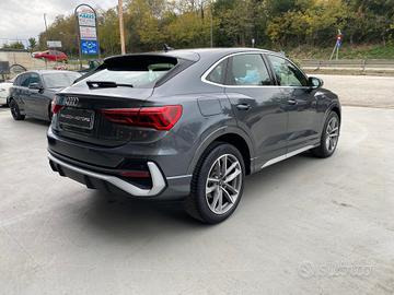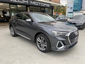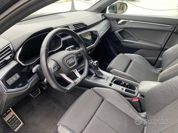 Audi Q3 Sportback Motorizzazione: 2.0 Diesel 150cv Cambio automatico Trazione anteriore Allestimento S-line interno ed esterno Auto tenuta maniacalmente, full optional,full service audi - Clima automatico bizona - Portellone posteriore elettrico - Sensori di parcheggio anteriori e posteriori - Cerchi in lega da 20" - Sedili misto pelle/tessuto - Volante multifunzione con palette per cambiata - Illuminazione interna multicolore - Fari anteriori e posteriori full led automatici - Virtual cockpit plus - MMi plus - Frenata di emergenza automatica - Avviso di superamento corsia con correzione carreggiata - Cruise control adattivo - Sensore luci e pioggia - Modalita di guida - ecc... Passaggio di proprietà a carico dell'acquirente.