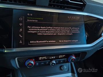 AUDI Q3 SPB 35 TDI QUATTRO S TRONIC S LINE IMMATRICOLATA 07.2023 KM. 44.872 (TAGLIANDATI E CERTIFICATI AUDI) COLORE ESTERNO: GRIGIO DAYTONA MET. COLORE INTERNO: NERO 1X1 Trazione integrale Quattro A8Y Pacchetto sportivo S line 9S1 Audi virtual cockpit PX2 Fari a LED e fanali di coda a LED con indicatori di direzione dinamici posteriori 7UG Sistema di navigazione MMI plus con MMI touch 7X5 Assistente di parcheggio con sistema di controllo per il parcheggio plus (sensori anteriori e posteriori) 2H6 Audi drive select 7Y1 Avviso di cambio corsia 6I6 Assistente alla guida adattivo U25 Cerchi in lega 19”, design S a 5 razze doppie dinamiche 1XW Volante in pelle a 3 razze multifunzionale plus 9AK Climatizzazione comfort a 2 zone IT3 Sistema di navigazione e infotainment Audi connect plus UI2 Audi smartphone interface (Apple Car Play & Android Auto) 4E7 Cofano del bagagliaio ad apertura e chiusura elettriche Q4H Sedili sportivi anteriori EL5 Audi connect Remote & Control (per sistema di navigazione MMI plus) EM1 Ricognitore di stanchezza 6XE Specchietti esterni regolabili, riscaldabili e ripiegabili elettricamente 8Q3 Regolazione della profondità dei fari 8N6 Sensore luminosità e pioggia 8G1 Regolazione automatica degli abbaglianti QR9 Riconoscimento della segnaletica stradale 8K4 Luci diurne NZ2 Chiamata di emergenza 6K4 Audi pre sense front per sistema di regolazione automatica della velocità UNIPROPRIETARIO OTTIME CONDIZIONI GENEREALI .Contattaci su WhatsApp al 349*3655681 per ricevere foto, video, lista accessori auto .Videochiamata per acquistare l’auto a distanza .N. Tel. 0541*612284 / N.Cell. : 349*3655681 .Il Vostro usato lo ritiriamo / permutiamo alle migliori quotazioni di mercato. .Gli importi sono parzialmente o interamente finanziabili con comode rate mensili. .Km auto certificati dal produttore. .Le auto pubblicate sono visibili e disponibili presso la Nostra sede. .Tutte le auto sono taglianda