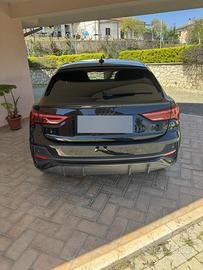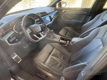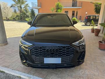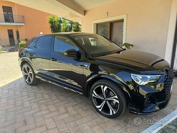Audi Q3 Sportback 35 TDI 150 CV, anno 2020, alimentazione diesel, cambio automatico S tronic, palette al volante per cambio sequenziale, allestimento S line interno ed esterno, pacchetto Black Edition, tetto panoramico in cristallo, cerchi in lega da 20” con pneumatici 255/40 ZR20, fari orientabili con illuminazione adattiva, pacchetto luci interne a LED con ambient light regolabile, Virtual Cockpit Audi ad alta risoluzione, interni in pelle nera S line in ottime condizioni, sedili posteriori come nuovi, climatizzazione posteriore, sensori di parcheggio, cruise control, sistema di assistenza alla guida con funzioni di sicurezza attiva, carrozzeria molto curata, auto non fumatori, ottima insonorizzazione, manutenzione regolare.