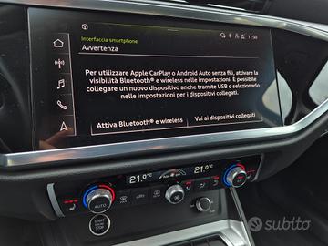 AUDI Q3 SPORTBACK 35 TFSI S TRONIC IMMATRICOLATA 06.2023 KM. 24.148 (TAGLIANDATI E CERTIFICATI AUDI) COLORE ESTERNO: GRIGIO MET. COLORE INTERNO: NERO G1C Cambio automatico S tronic 8G4 Fari Matrix LED con indicatori di direzione dinamici 8VM Fanali di coda a LED plus 8X1 Impianto lavafari UI2 Audi smartphone interface (Apple Car Play & Android Auto) 7X2 Sistema di controllo per il parcheggio plus (sensori anteriori + posteriori) 6Y2 Impianto di limitazione velocità 9AK Climatizzazione comfort a 2 zone UH2 Assistente alla partenza UG1 Sistema di assistenza alla partenza in salita 6K4 Audi pre sense front per sistema di regolazione automatica della velocità VL6 Misure di protezione dei pedoni e dei ciclisti ampliate e proattive 2H6 Audi drive select (selezione profile guida) 7Y1 Avviso di cambio corsia C2I Cerchi in lega 18” design a 5 razze doppie 1XW Volante in pelle a 3 razze multifunzionale plus 4A3 Riscaldamento dei sedili anteriori 3B4 ISOFIX e Top Tether per i sedili posteriori esterni 9S1 Audi virtual cockpit I8Y Infotainment Top High (MIB3) QQ0 Illuminazione interna 6XD Specchietti esterni regolabili e riscaldabili elettricamente 8Q3 Regolazione della profondità dei fari 8K1 Comando luci per guida diurna 8N6 Sensore luminosità e pioggia 6XD Specchietti esterni regolabili e riscaldabili elettricamente 5J1 Spoiler posteriore QH1 Sistema di comunicazione vocale 9ZV Audi phone box light PNC Sistema di navigazione MMI plus attivabile con codice a pagamento EL5 Audi connect Remote & Control 7K1 Indicatore di controllo della pressione dei pneumatici 4X3 Airbag laterali anteriori e sistema degli airbag per la testa 4H3 Chiusura di sicurezza per bambini 4L6 Specchietto interno con funzione automatica antiabbagliamento 7AA Immobilizzatore elettronico 7L6 Sistema Start/Stop con recupero dell'energia NZ2 Chiamata di emergenza 1AS Sistema elettronico di controllo della stabilità ESC UNIPROPRIETARIO PREZZO COMPRENSIVO DI IVA A
