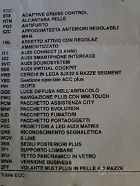 Immatricolata a gennaio 2018 da concessionaria, acquistata a luglio 2018 come Audi Prima Scelta Plus, km 115.000 attuali. Tutto l'allestimento degli optional è indicato nella foto. Presenta sul cofano anteriore alcune piccole ammaccature per grandine. Interno in ottimo stato.