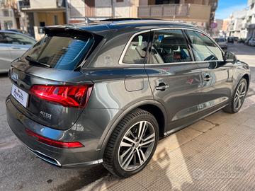 AUDI Q5 40 TDI diesel 2.0TDI 190cv QUATTRO (trazione integrale) allestimento S-LINE con cambio automatico 7 rapporti, doppio tetto panoramico ed apribile, virtual cockpit (tachimetro digitale), navigatore satellitare cartografico, Bluetooth, radio cd mp3 con ingresso USB e AUX, CARPLAY, telecamera di retromarcia, climatizzatore elettronico tre zone, interni sportivi in pelle parziale di colore nero, sedile anteriore regolabile anteriore, volante sportivo in pelle multifunzione con comandi del cambio (cambio F1), cruise control con funzione adaptive (A.C.C.), sensori parcheggio anteriori e posteriori, specchi retrovisori regolabili e richiudibili elettronicamente, fari FULL LED con freccia dinamica, cerchi in lega da 20" con gomme invernali al 90%, sensore luce e pioggia, vetri privacy, LANE ASSIST (sensore carreggiata), AUDI PRE SENSE (sensore frenata), portellone elettrico, pacchetto luci d'ambiente con possibilità di cambio colore