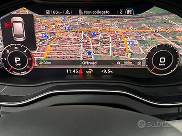 Equipaggiamento in dotazione : pacchetto S LINE interno ed esterno, cruise control, retrovisore auto anabbagliante, audi pre sense, freno a mano elettronico, illuminazione interna a led, ruota di scorta, bluetooth, specchietti riscaldabili e ripiegabili elettricamente, fari xenon ant, fari post a led, luci diurne a led, volante multifunzione a tre razze, bracciolo, navigatore, sistema di ausilio al parcheggio ant e post, retrocamera, cerchi da 19, clima automatico, drive select, audi phone box, bagagliaio elettrico, sensore luci e pioggia, sedili sportivi, virtual cockpit.