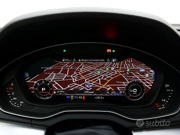 PACCHETTO DI NAVIGAZIONE PLUS CON MMI TOUCH: Sistema di Navigazione con display a colori da 8,3" ad alta risoluzione, Visualizzazione tridimensionale delle mappe stradali con indicazione di attrazioni turistiche e modelli di città, Informazioni on-line sul traffico, Ricerca MMI, Visualizzazione supplementare della mappa di Navigazione sull'Audi virtual cockpit, Informazioni dettagliate sugli itinerari.
