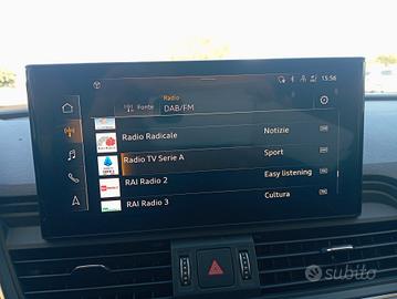 Audi Q5 Sportback 40 2.0 Tdi,immatricolata in data 20/04/2022 . Cilindrata: 1.968 cc. Innovativo propulsore Mild Hybrid Electric Vehicle (MHEV) da 204 cv con sistema Start & Stop che rispetta la normativa anti-inquinamento "Euro 6D-TEMP". Autovettura dotata di sistema di trazione integrale "quattro" con tecnologia Ultra. Allestimento "S line" dotato dei seguenti optional:vernice metallizzata ,climatizzatore automatico comfort a 3 zone,inserti in Micrometallic argento,sedili sportivi rivestiti in tessuto ,volante sportivo multifunzione Plus in pelle a 3 razze appiattito nella parte inferiore con bilancieri,pacchetto luci ambiente,sistema di navigazione MMI Plus con MMI Touch,Audi Virtual Cockpit Plus,Audi Smartphone Interface,Audi Phone Box Light,ricezione radio digitale (DAB),interfaccia Bluetooth,ricarica senza fili Wireless Charging,specchietto retrovisivo interno schermabile automaticamente con design senza cornice,Cruise Control,Audi Active Lane Assist,Audi Pre Sense City,Audi Drive Select,cambio automatico "S tronic" a 7 rapporti,proiettori anteriori in tecnologia Led,dispositivo di assistenza per proiettori abbaglianti,gruppi ottici posteriori a Led,specchietti retrovisori esterni regolabili e ripiegabili elettricamente,pacchetto esterno lucido nero,vetri laterali posteriori e lunotto oscurati,mancorrenti al tetto in alluminio,assetto sportivo,sistema di ausilio al parcheggio Plus,portellone vano bagagli ad apertura e chiusura elettrica,sistema di controllo pressione pneumatici,verniciatura completa per paraurti,battitacco anteriore con inserto in alluminio illuminato con logo S,cerchi in lega di alluminio