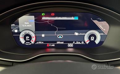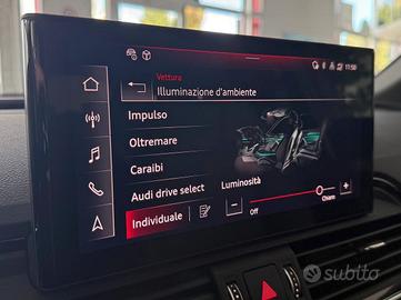 ABS; EDB; BDA; ESP; AWD; AIRBAG GUIDA, PASSEGGERO, LATERALI, TESTA, GINOCCHIA GUIDATORE; ALZACRISTALLI ELETTRICI ANTERIORI E POSTERIORI; TETTO PANORAMICO ED APRIBILE; ALLESTIMENTO IDENTIY BLACK; REGOLAZIONE SPECCHIETTI ELETTRICA + RICHIUDIBILI ELETTRICAMENTE + RISCALDABILI; BRACCIOLO ANTERIORE CON VANO PORTAOGGETTI; INTERFACCIA BLUETOOTH; CLIMATIZZATORE AUTOMATICO COMFORT A TRE ZONE; VIRTUAL COCKPIT; FARI ANT. + POST LED; FARI FULL LED; NAVIGATORE SATELLITARE PLUS; SMARTPHONE INTERFACE-CARPLAY; BOX CON RICARICA WIRELESS; SENSORI DI PARCHEGGIO ANTERIORI E POSTERIORI PLUS CON TELECAMERA POSTERIORE; SEDILI SPORTIVI IN PELLE REGOLABILI ELETTRICAMENTE; CHIUSURA E L'ACCENSIONE DELL'AUTO SENZA L'UTILIZZO DELLA CHIAVE; APERTURA E CHISURA ELETTRICA DEL BAGAGLIAIO; VETRI POSTERIORI OSCURATI; AUDI DRIVE SELECT (SELETTORE MODALITÀ DI GUIDA); CAMBIO AL VOLANTE; CRUISE CONTROLL ADATTIVO CON CONTROLLO DALLA CARREGGIATA; AUTO HOLD; CERCHI IN LEGA BRUNITI DA 20; SISTEMA DI CONTROLLO PRESSIONE PNEUMATICI; SISTEMA ISOFIX; SMART KEY; PULSANTE CHIAMATA D'EMERGENZA; RETROVISORE INTERNO ELETTROCROMATICO; LISTELLI SOTTO PORTA IN ALLUMINIO RETROILLUMINATI 'S LINE; VOLANTE MULTIFUNZIONE SPORTIVO IN PELLE; PIANTONE DELLO STERZO REGOLABILE; RUOTINO DI SCORTA; GARANZIA.