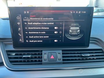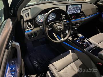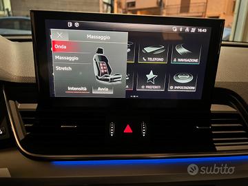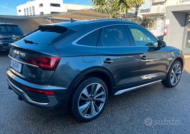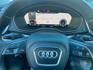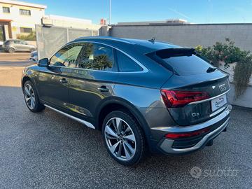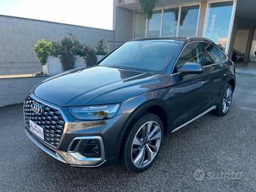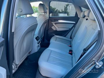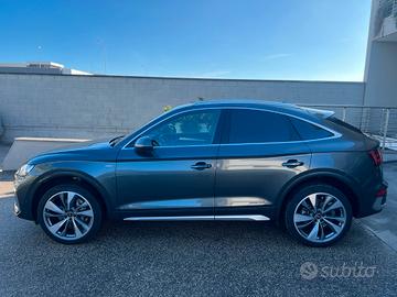 AUDI Q5 SPORTBACK 40 TDI 2.0TDI 204cv QUATTRO (trazione integrale) allestimento S-LINE con cambio automatico 7 rapporti, virtual cockpit (tachimetro digitale), navigatore satellitare cartografico, Bluetooth, radio cd mp3 con ingresso USB e AUX, CARPLAY, telecamera 360 (riprende le quattro angolazioni), climatizzatore elettronico tre zone, interni sportivi in pelle totale di colore grigio chiaro, lombare elettronico con sedili anteriori massaggianti, volante sportivo in pelle multifunzione con comandi del cambio (cambio F1), cruise control con funzione ADAPTIVE (A.C.C.), sensori parcheggio anteriori e posteriori con park assist (parcheggio automatico), specchi retrovisori regolabili e richiudibili elettronicamente, fari FULL LED MATRIX con freccia dinamica, cerchi in lega diamantati bi-color da 21" con gomme estive al 90%, sensore luce e pioggia, vetri privacy, LANE ASSIST (sensore carreggiata), AUDI PRE SENSE (sensore frenata), portellone elettrico con funzione HANDS-FREE, pacchetto luci d'ambiante con possibilità di cambio colore, caricatore wirelss..