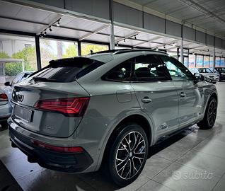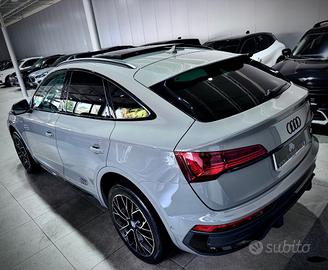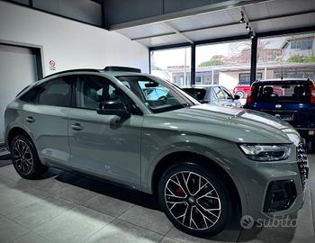 Audi Q5 Sportback 12V Mhev 40 2.0 TDI 204cv Quattro S-Tronic,allestimento S-Line Plus,dotata di cambio automatico,sequenziale e al volante,Start&Stop,colorazione Audi Individual Grigio Nano,Night pack,cerchi 20" bicolore,pinze freni rosse,vetri posteriori oscurati,doppio tetto panoramico apribile,telecamera di manovra,pack keyless,park assist parcheggiatore automatico,Pack full led Exterior,fari Full Led,battitacco logo led S-Line,Virtual Cockpit 10",realta' aumentata,sistema di navigazione,autoradio mp3 con display 12",connectivity pack Carplay ioS e Android,aux,usb,bluetooth voce e dati,stazione di ricarica wireless,hotspot wi-fi,attivazione vocale,impianto Audio,ambient light a colorazione variabile,interni in pelle totale S-Line,sedili riscaldabili,seduta estendibile e supporto lombare,poggiabraccio,clima automatico,volante multifunzione,adaptive cruise control,retrovisori regolabili e richiudibili elettricamente,portellone elettrico,sensori di parcheggio,sensori luci e pioggia,abs,esp,tutti i sensori e i sistemi di assistenza e sicurezza alla guida.