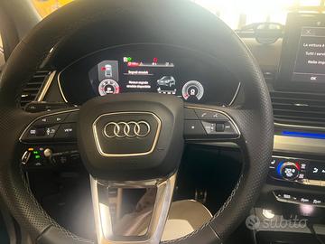 Audi Q5 SPB TDI 204 cv S-Line quattro S-tronic. Auto in garanzia ufficiale Audi fino al 2028 Audi Connect Chiave comfort con controllo dal sensore apertura portellone Corrimano tetto Dispositivo traino Fari Matrix led Luci ambiente Pacchetto assist tour Sensori di parcheggio Riscaldamento sedili anteriori e posteriori Audi sound System Verniciatura effetto perlato Sedili pelle e alcantara Cerchi Audi sport 20" Tettuccio apribile Gancio traino automatico a scomparsa