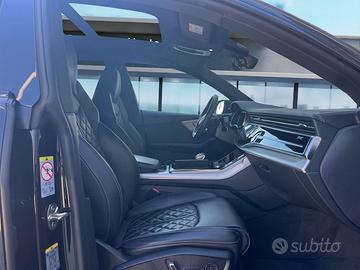 Cerchi in lega Audi Sport 10J x 23 design a 10 razze trapezoidali, in look nero lucido - Colore esterno metallizzato Nero Mythos - Luci d'ingresso anteriori e posteriori a LED - Pacchetto look nero / per elementi del single frame - Pinze dei freni anteriori e posteriori verniciate in rosso