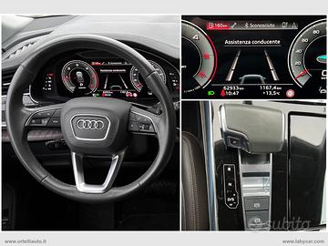 Optional principali:-Bluetooth-Cerchi da '21 con pneumatici 285 45-Quadro Strumenti Digitale-Fari HD Matrix-Led con Luci di Direzione Dinamiche-MMI Navigation Plus Touch-Supporto Lombare 4 vie per i Sedili Anteriori-Sedili Rivestiti in Pelle Valcona-Riscaldamento e Ventilazione e Massaggio Sedili Anteriori-Specchi Esterni Regolabili e Ripiegabili Elettricamente-Climatizzatore Automatico Bi-Zona-Volante in Pelle Multifunzione-02 Ingressi USB-Cruise Control-AppleCarPlay-AndroidAuto-Sensori di Parcheggio Anteriori e Posteriori con Display-Riconoscimento Segnaletica-Sistemi di assistenza alla guida: -Assistente Superamento di Carreggiata-Baule ad Apertura e Chiusura Elettrica-Sistema di Videocamera con Vista Panoramica 360 -Audi Drive Select-