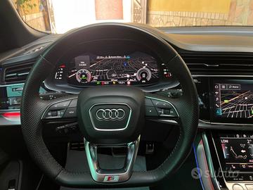 Jolly car vende Audi Q8,verisione 50 TDI,trazione QUATTRO,pacchetto s-line interno esterno,cilindrata 3.0,cavalli 285,anno 11/2019,alimentazione Diesel,cambio automatico e sequenziale al volante F1,con 7 modalità di guida(OFFROAD)(ALLROAD),tetto panoramico e apribile con tendina para sole elettrica,l’auto è dotata di aria climatizzata digitale bi-zone anteriore e posteriore,sicure centralizzate con telecomando e digitale,accensione veicolo con pulsante start/stop,chiave key less,4 vetri elettrici,specchietti retrovisori regolabili e chiusura elettrica,reader frenata assistita,lane assist,interni in pelle e alcandare,regolabili elettrici
