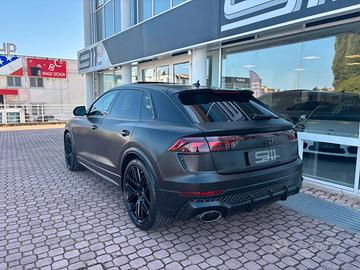 Audi RSQ8 TFSI 4.0 V8 Performance Colore Esterno Nero Opaco (pellicola), colore originale Nero Mythos Metallizzato Interni In Pelle Valcona trapuntata Nera con inserti Rosso Espresso La vettura è ancora in Garanzia Casa Madre fino 08/2029 o entro 80.000km. È completamente pellicolata in Nero Opaco con fatture e monta uno scarico originale ed omologato Akrapovich con fatture (oltre 20.000€ di modifiche) Accessori Extra: Airbag laterali, anteriori e posteriori e per la testa Audi Phone Box Cerchi a 6 razze a Y Chiave Comfort ed impoanto antifurto Dispositivo di chiusura servo assistita per le portiere Fanali di coda OLED Digitali Fari Matrix LED HD con luce Laser Audi e impianto lavafari Impianto di scarico sportivo RS Impianto freni RS in carboceramica (pinze rosse) Inserti decorativi in alluminio spazzolato nero Pacchetto assistenza città Pacchetto Assistente di parcheggio Plus Pacchetto Design RS Rosso Plus Pacchetto Estetico Nero Parabrezza in vetro comfort climatizzato ed isolante acusticamente Sedili anteriori e posteriori riscaldabili Tendina parasole elettrica posteriore Sedili Ventilati Sedili con funzione massaggiante Tetto Panoramico Apribile Velocità massima aumentata a 305 km/h Vetri delle porte e laterali insonorizzati Vetro parasole oscurato Volante sportivo, appiattito nella parte inferiore