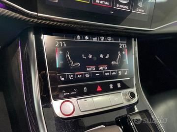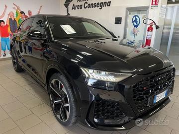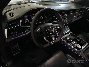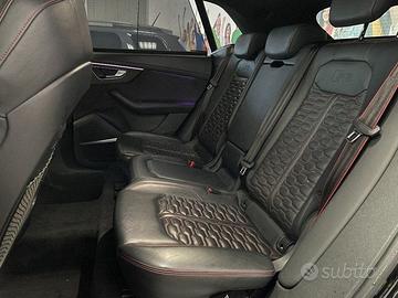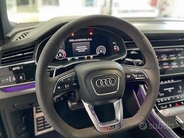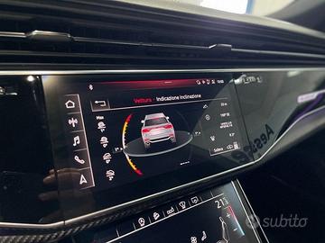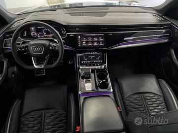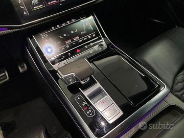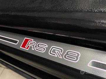 Adaptive air suspension - con taratura specifica RS - Airbag fullsize per conducente e passeggero - Airbag laterali anteriori - Airbag laterali per la testa - Alette parasole allungabili (lato guida e passeggero) con specchietti di cortesia illuminati - Alloggiamento specchietti retrovisivi esterni in look alluminio opaco - Appoggiabraccia centrale anteriore comfort separato per conducente e passeggero - Appoggiapiedi e pedaliera in acciaio inox - Assistenza alla partenza - Audi Music Interface - Audi connect (3 anni):servizi di navigazione & infotainment - Audi connect Emergency call (eCall/bCall) e service call con servizi Audi connect sicurezza/comfort - Audi drive select - Audi phone box light - Audi pre sense basic - Audi pre sense front con sistema protezione pedoni - Audi smartphone interface - Audi virtual cockpit - Autolimitazione velocità a 250 km/h - Bulloni antifurto per cerchi con riconoscimento ruota allentata - Cambio automatico Tiptronic 8 rapporti - Cerchi in lega Audi Sport 10J x 22" design 10 razze a stella, pneum. 295/40 - Chiave comfort con sbloccaggio portellone vano bagagli tramite sensori, antifurto e funz. safelock - Cielo dell'abitacolo in tessuto nero - Climatizzatore automatico comfort a 4 zone - Denominazione modello con logo RS Q8 nella griglia Singleframe e sul portellone vano bagagli - Disattivazione airbag lato passeggero - Dispositivo antiavviamento elettronico - Dispositivo di assistenza per proiettor