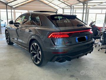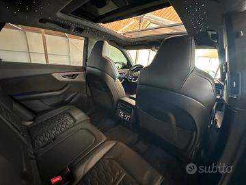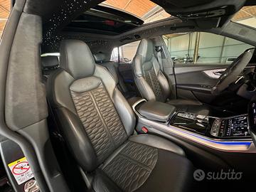 Audi RSQ8 TFSI 4.0 600cv, anno 2021, 159.000km originali, sempre tagliandata regolarmente in officina audi, unico proprietario, strafull, tetto panoramico apribile, fari full led, cerchi in lega da 23', cielo in alcantara stellato, telecamere 360 e telecamera 3d, sedili ventilati e riscaldati sia anteriori che posteriori, sedili anteriori massaggianti, head up display, portiere soft close, light system, apertura e chiusura bagagliaio elettrico, pacchetto carbonio completo ecc ecc