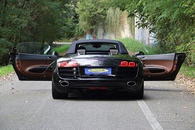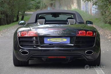 L'Audi R8 V10 Spyder quattro R-Tronic (2010) è una supercar cabriolet che unisce eleganza e prestazioni. Spinta da un motore V10 da 5.2 litri con trazione integrale quattro e cambio robotizzato R-Tronic, offre 525 CV e un'esperienza di guida emozionante, anche a cielo aperto. Design affilato, sound inconfondibile e tecnologia Audi completano il pacchetto.