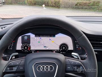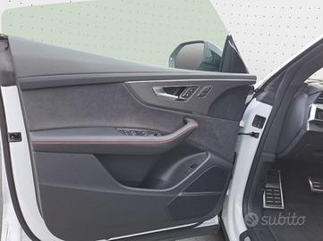 Regolazione elettrica dei sedili anteriori, Riscaldamento dei sedili anteriori, Sedili sportivi RS, Volante regolabile elettricamente, Appoggiabraccia centrale anteriore comfort, Cielo dell'abitacolo in tessuto di colore Nero, Listelli sottoporta RS illuminati con inserto in alluminio e logo RS Q8 all'anteriore, Ventilazione sedili anteriori, Sedili posteriori plus, Rete divisoria estraibile, Volante sportivo RS multifunzionale a 3 razze, riscaldabile, Climatizzatore automatico comfort a 4 zone, Appoggiapiedi e pedaliera in acciaio inox, Luci d'ingresso con proiezione logo Audi Spot sotto le portiere anteriori e posteriori, Sistema Mild-hybrid 48 V, Specchietti retrovisivi esterni schermabili automaticamente con funzione di memoria, Sterzo integrale, Trazione integrale permanente quattro con differenziale centrale autobloccante, Triangolo di emergenza, materiale pronto soccorso, attrezzi di bordo, Kit riparazione pneumatici, Denominazione modello con logo RS Q8 nella griglia Singleframe e sul portellone vano bagagli, Griglia Singleframe ottagonale con trama a nido d'ape in nero lucido, Inserti in alluminio Spektrum, Modanature esterne alle cornici dei finestrini in allumnio anodizzato, Paraurti anteriore e posteriore in design RS, Audi virtual cockpit plus, Chiave comfort con sbloccaggio portellone vano bagagli tramite sensori, antifurto e funzione safelock, Serbatoio di carburante da 85 l, Alette parasole allungabili (lato guida e passeggero) con specchietti di cortesia illuminati, Dispositivo antiavviamento elettronico, Bulloni antifurto per cerchi con riconoscimento ruota allentata, Adaptive air suspension - con taratura specifica RS, Ricezione radio digitale, Sistema sound Premium Bang & Olufsen 3D, Radio MMI plus con MMI touch response, Audi connect (3 anni): servizi di navigazione & infotainment, Audi phone box light, Sistema di navigazione MMI plus con MMI touch response, Cambio automatico tiptronic a 8 rapporti,
